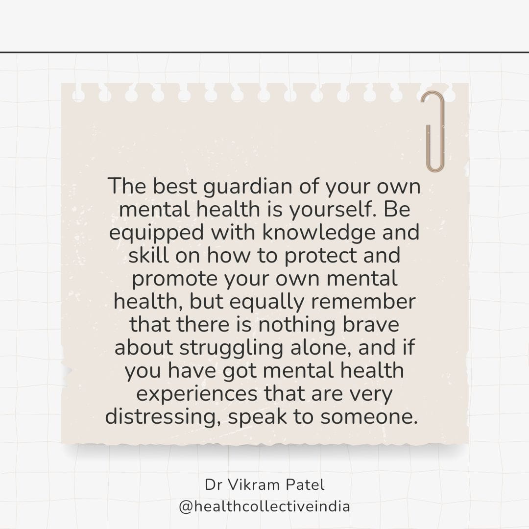 - We all have mental health. This was the big one I learned through interviews (including with the incredible Dr Vikram Patel back in the day). You can watch/ read that interview here . As he says, we are all guardians of our own mental health.