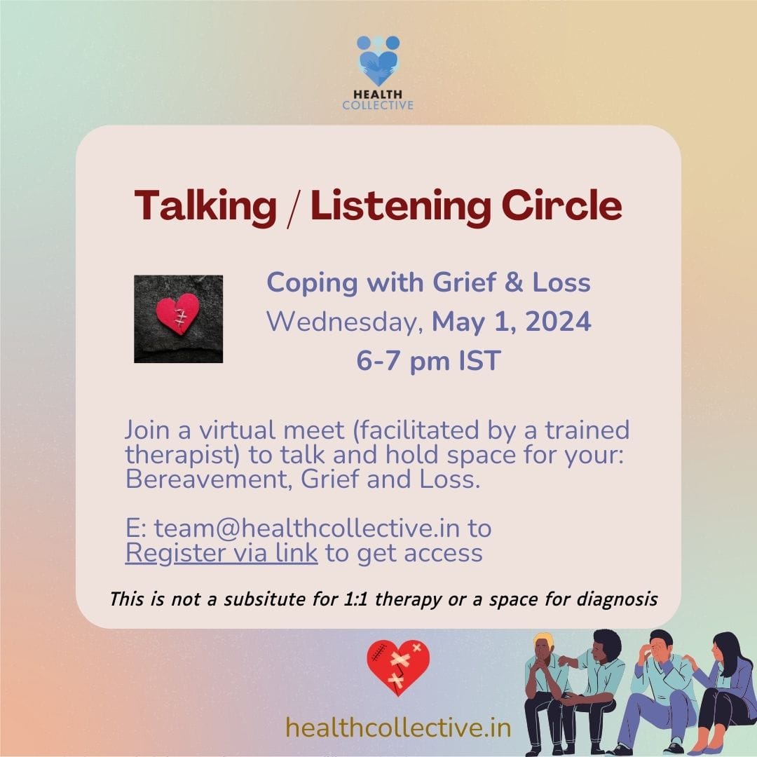 We're following up on a few listening/talking circles on Grief and Loss, facilitated by a trained therapist as safe spaces to share and hold space for each other. These are small group and virtual.