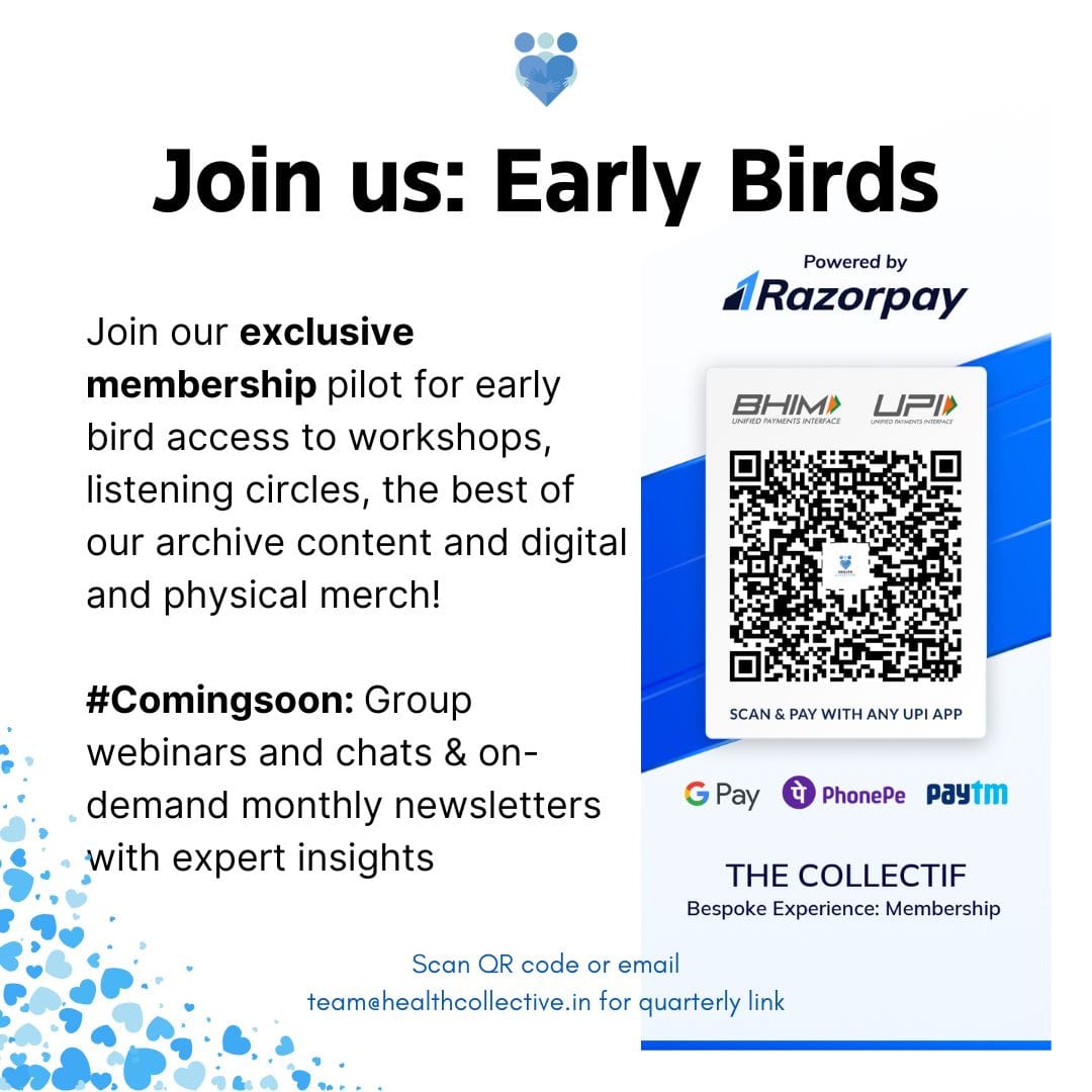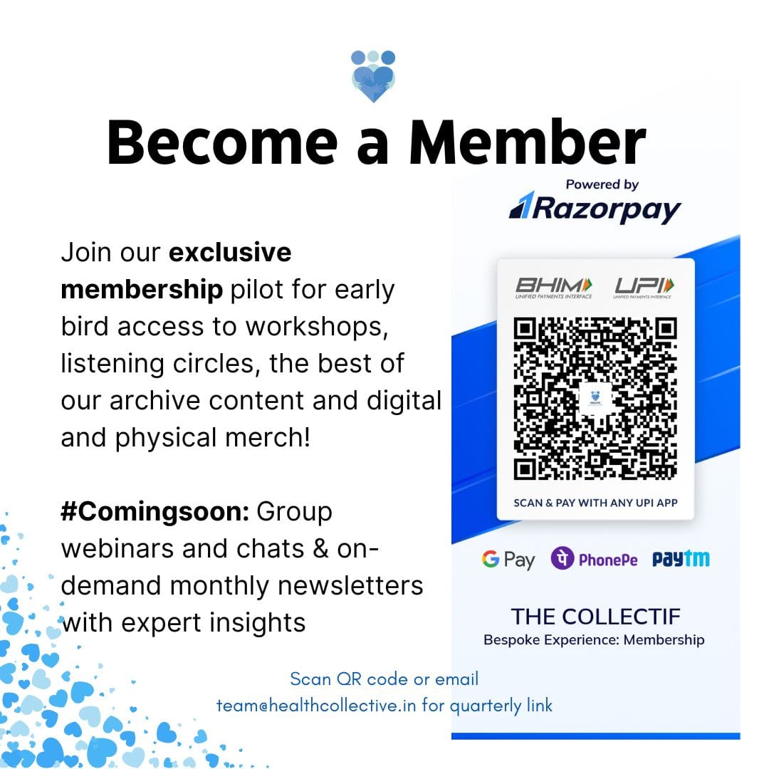 You can use this QR code or look at a quarterly subscription (pilot) first. Email team@healthcollective[dot]in with your queries.