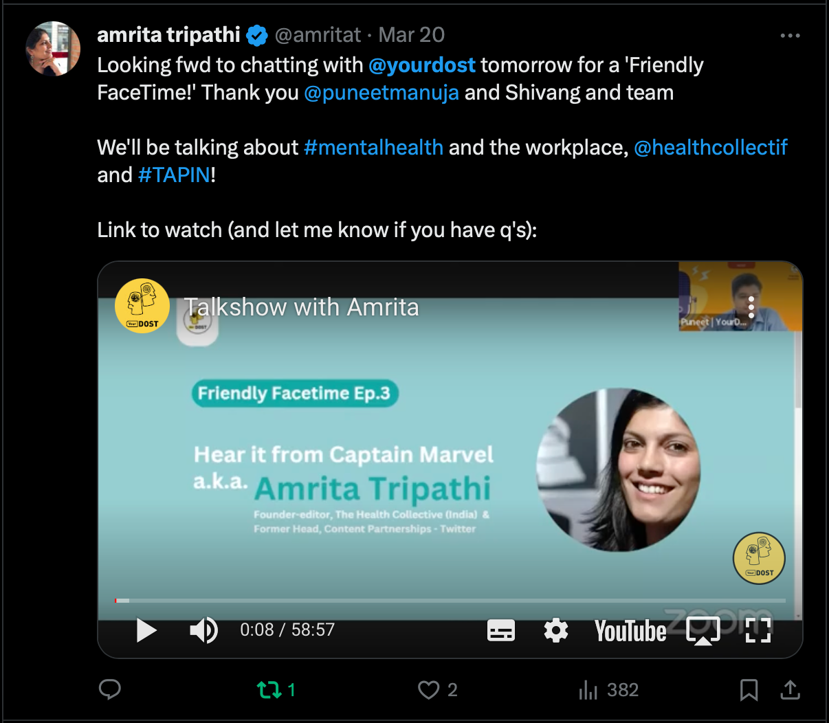 - Loved being interviewed by Puneet and the YourDOST team, it was truly lovely of them to notice our work all these years and give us a shout. Watch here!